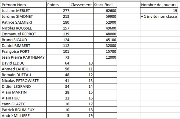 Cette soirée a réuni 20 participants dont 1 invité et s'est terminée à 01h00 du matin