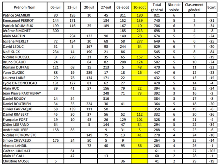 Nous vous donnons rendez-vous le Jeudi 17 Aout 2023 pour la 7éme soirée du Tournoi Estival.