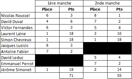 Bilan très positif avec 5 HU sur les 2 manches dont 4 remportés. Nous sommes remontés à la 4ème place à 13 points de la 3ème place.