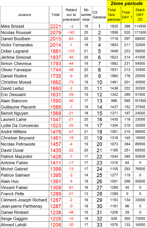 Résultats soirée :