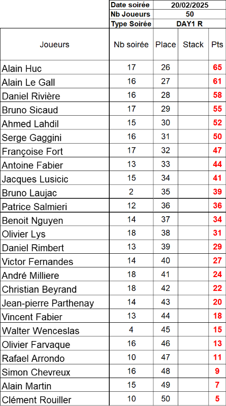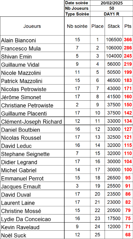 Résultat du Day 1R du 20 Février 2025