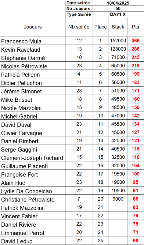 Les 3 premiers sont Francesco Mula, Kevin Ravelaud et Stéphanie Darmé