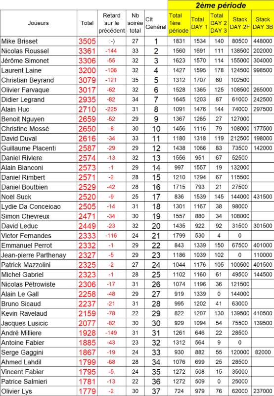 Résultats soirée :