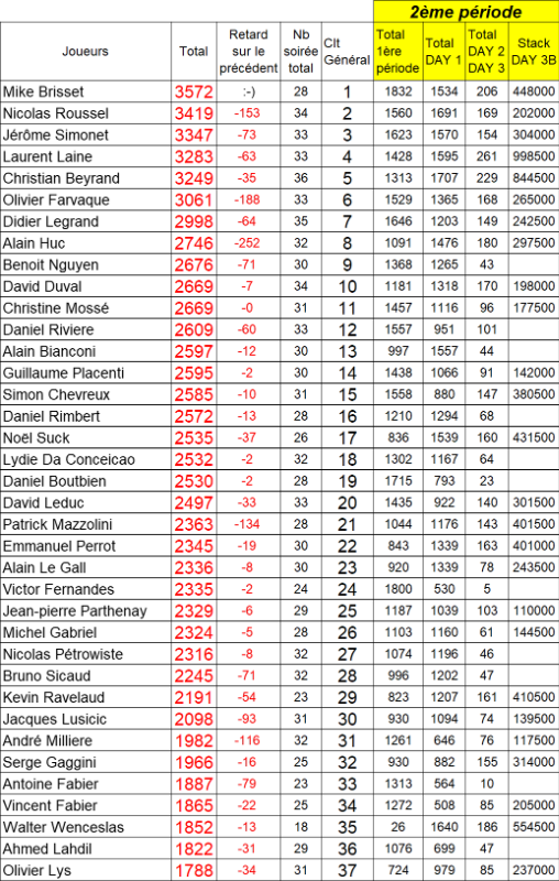 Résultats soirée :