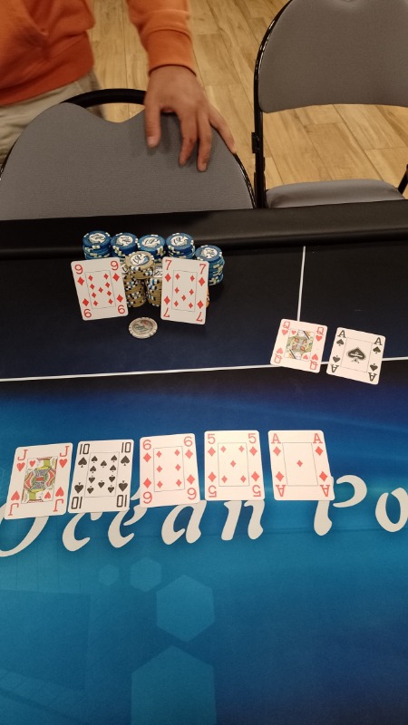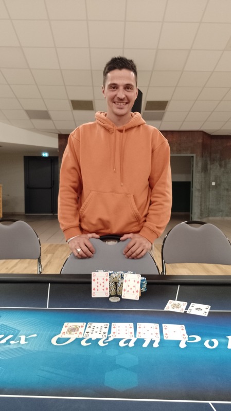Et le bouquet final la dernière main vs Damien qui termine beau deuxième, félicitations à lui qui a été vaincu par la fatigue et la perte de concentration face à Kévin...FATAL