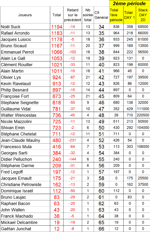 Résultats soirée :
